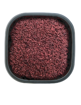 - Red Yeast Rice berbentuk layaknya buliran beras namun berwarna merah tua