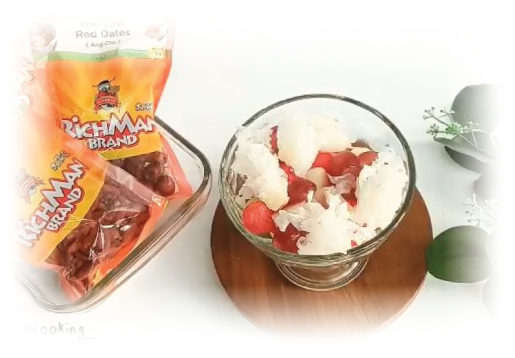 Tekstur dari Jamur Snow Ear yang seperti agar-agar, berpadu dengan manis alaminya Red Dates, Goji Berry dan buah segar lainnya perpaduan yang pas dan menyegarkan