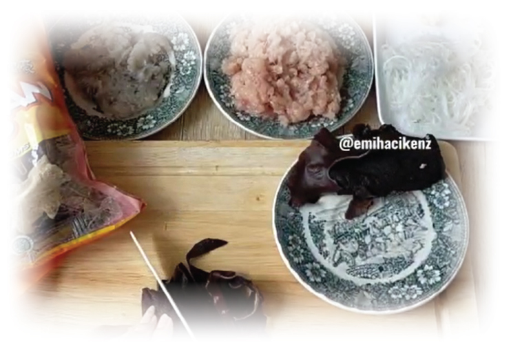 Rendam jamur wood ear dengan air panas kurang lebih selama 20 menit lalu cincang