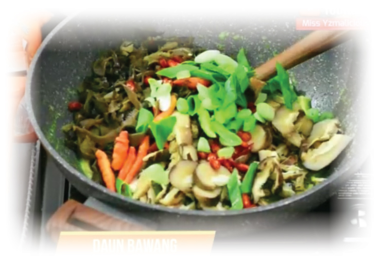 Rendam kedua jamur dengan air panas sampai mengembang. Lalu tiriskan, setelah itu iris kecil dan sisihkan